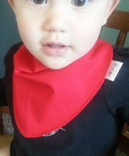 These bandana bibs are 100% cotton with a soft waterproof backing in white. Hook-and-loop for securing around the neck for easy removal. Very soft, flexible, and light weight against your baby's skin.