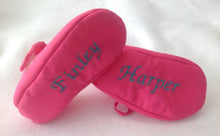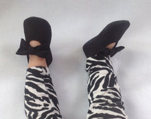 18-24 Month (6") ______________________________________________________________________ These baby girl shoes are made out of black cotton on the outside and they are lined on the inside with felt for extra comfort. There is hook-and-loop on the strap for securing. The bow is attached to the strap. _____________________________________________________________________ PERSONALIZATION ($10 more) Please email info.